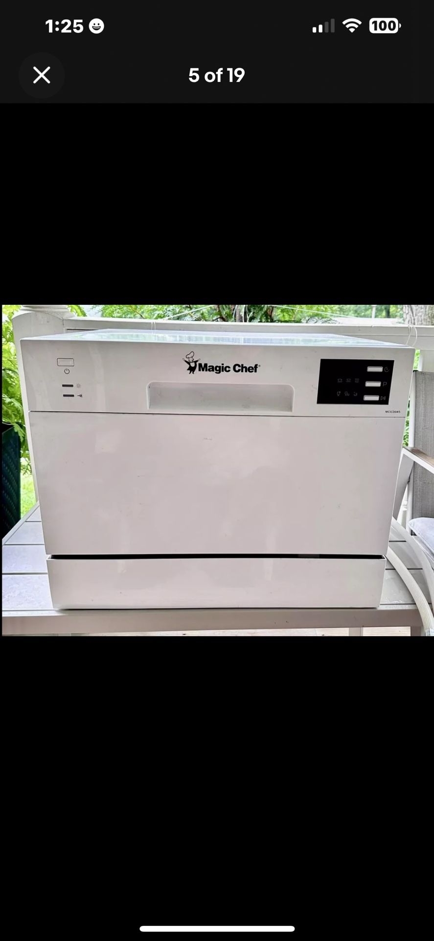 Countertop dishwasher Magic Chef MCSCD6W5 Energy Star 6 Plate Kitchen Countertop Dishwasher, White Item is in extremely lightly used condition. Item is in excellent working and looking condition. Comes with all connectors. Please see all photos for further description. A few photos are stock as you could see. This is for local pick up only. Thanks for looking.