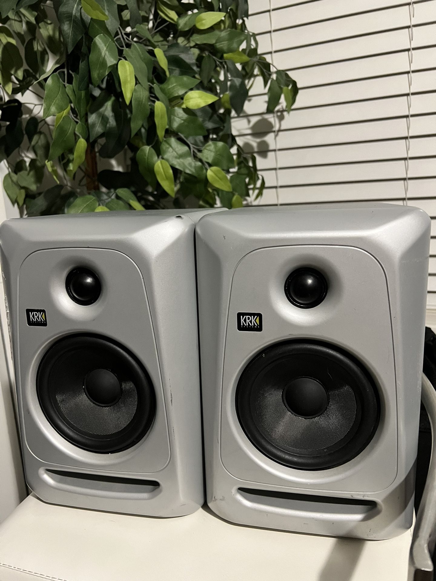 Used KRK RP5G3 Powered Monitor Pair. professional-grade sound with 5" glass-aramid composite woofers and 1" soft-dome tweeters. Each monitor provides 50W total output (30W LF, 20W HF) with a balanced frequency response from 45Hz to 35kHz. Front-firing bass port ensures accurate low-end, ideal for home studios or professional setups. Equipped with XLR, TRS, and RCA inputs for versatile connectivity. Crystal-clear audio performance you can trust from a brand known for precision.