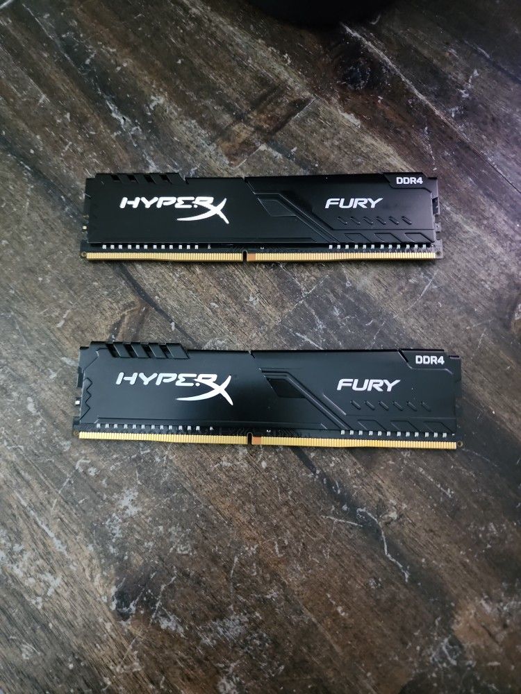 Hyper X (Kingston) 2x 8GB DDr4 2666 CL16 Disclosure; this was a kit of 4, but 2 were used by a server and sold. This is the remaining 2 out of the kit. RAM works fine as a pair.
