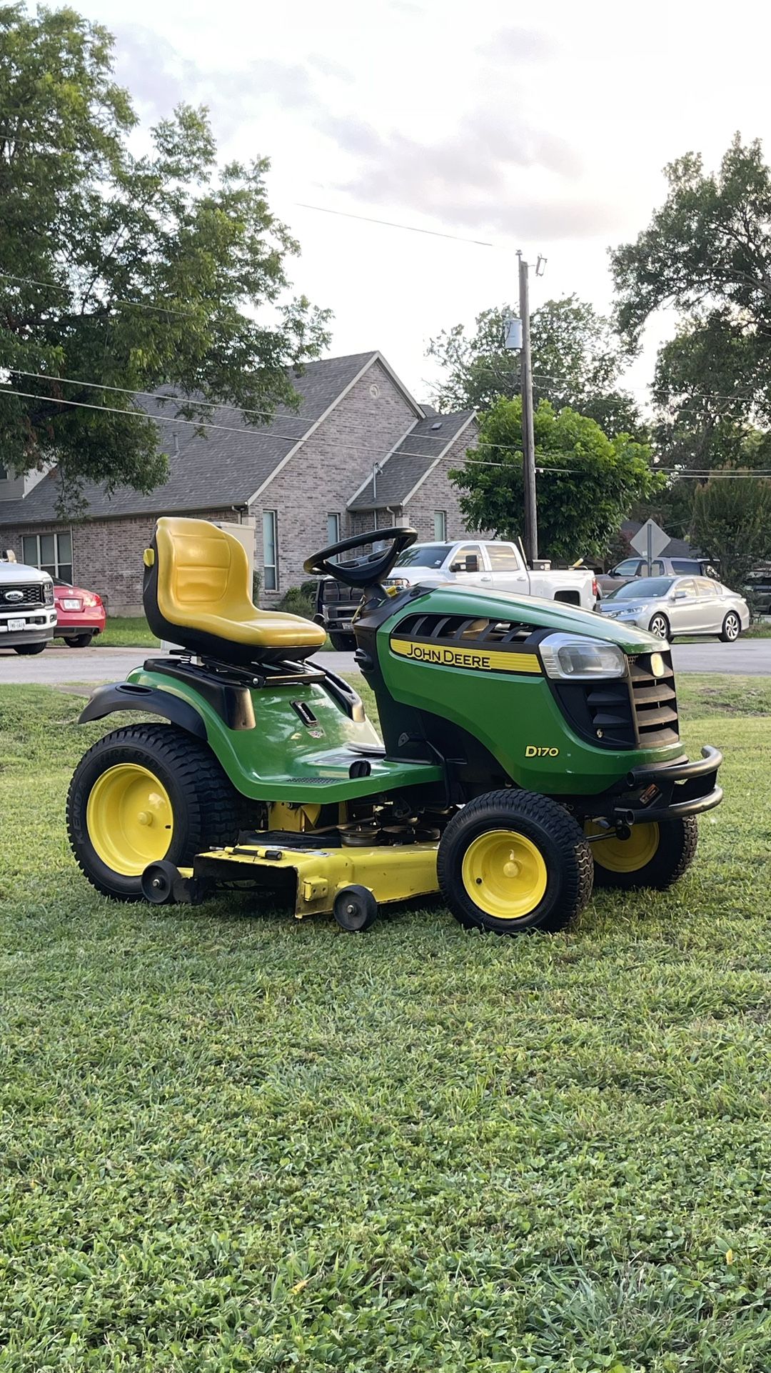 In excellent condition John Deere D-170 with 25 HP engine 54” deck everything works as it should new battery good blades ready to work I am located in Grand prairie cash only firm price tax free thank you En exelentes condiciones John Deere D-170 con motor 25 HP cubierta de 54” todo funciona como debe batería nueva cuchillas buenas listo para trabajar estoy localizado en Grand prairie solo efectivo precio firme libre de impuestos gracias