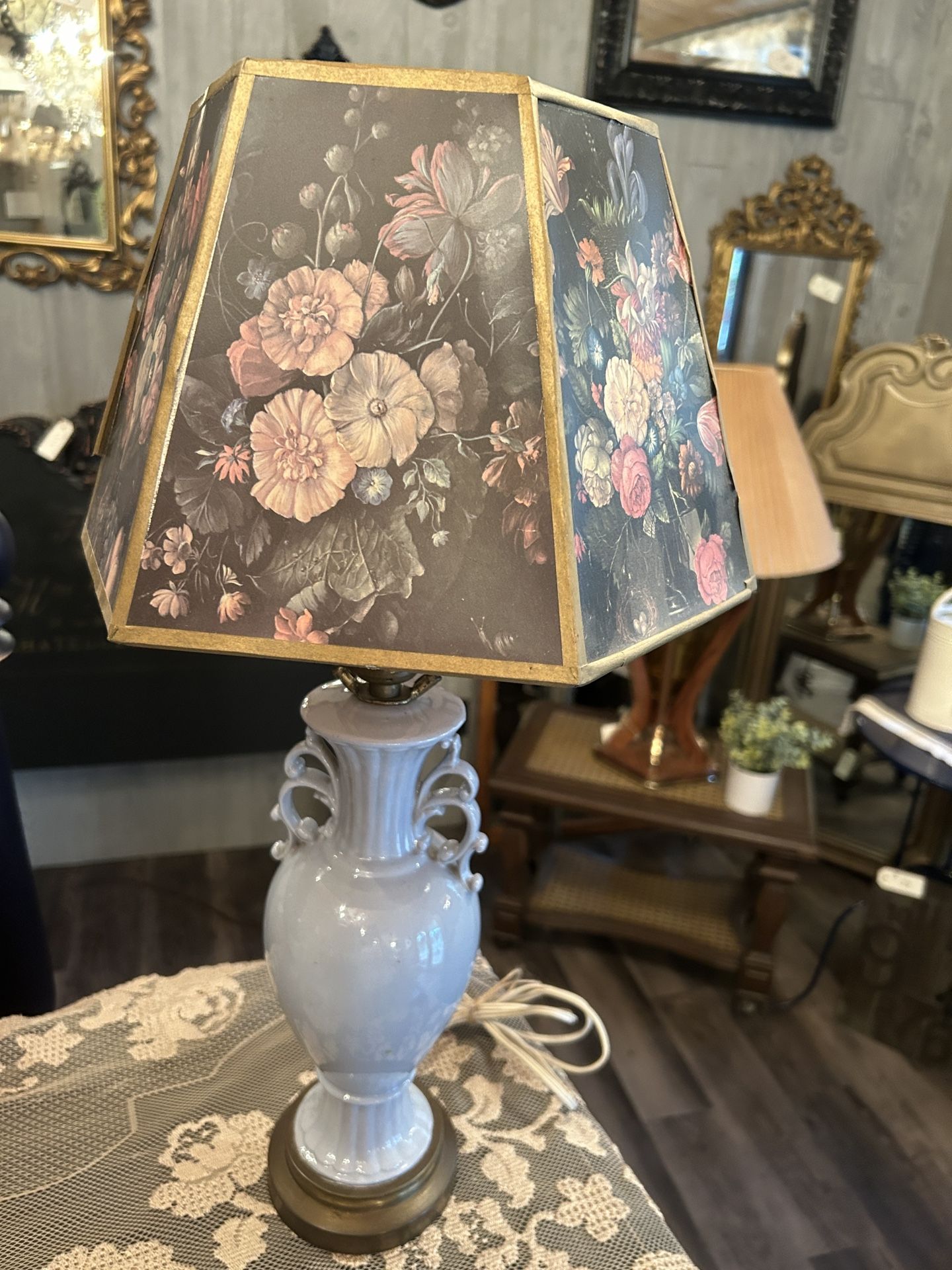 Vintage lamp , ban blue with floral shade 22” tall $20 Cash or Venmo