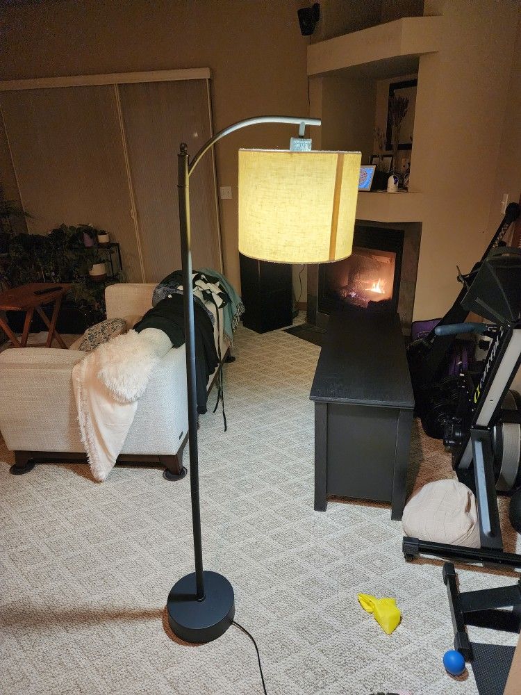 This is a floor lamp that takes a standard A19 bulb (included). It has a foot switch for turning on and off. It's used, but pretty much as good as new. It works and serves its purpose, but it's honestly not the greatest quality. It feels cheap. The bulb has to be screwed out slightly in order to make a connection. The base is weighted but feels like it should have been wider. We no longer need it, but I'm offering it for free in case someone just wants a simple floor lamp for whatever reason instead of taking it to the dump.