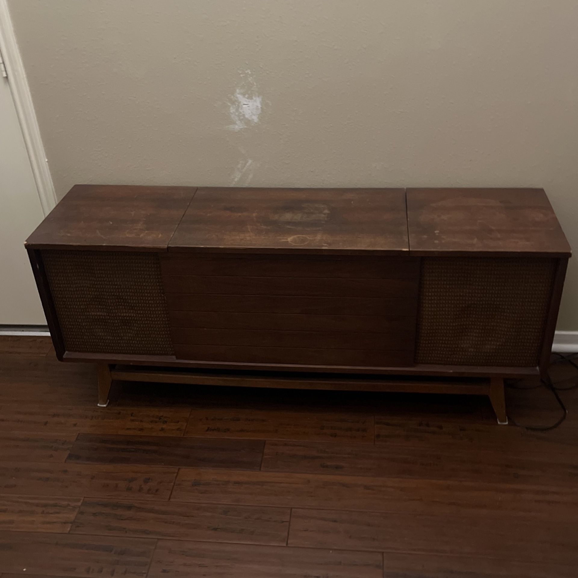 Antique stereo system. Been in my family since 1968. Stereo and speakers work great. Record player needs some work, I never figured what type of needle it needs. Looks a little rough. Make me a offer