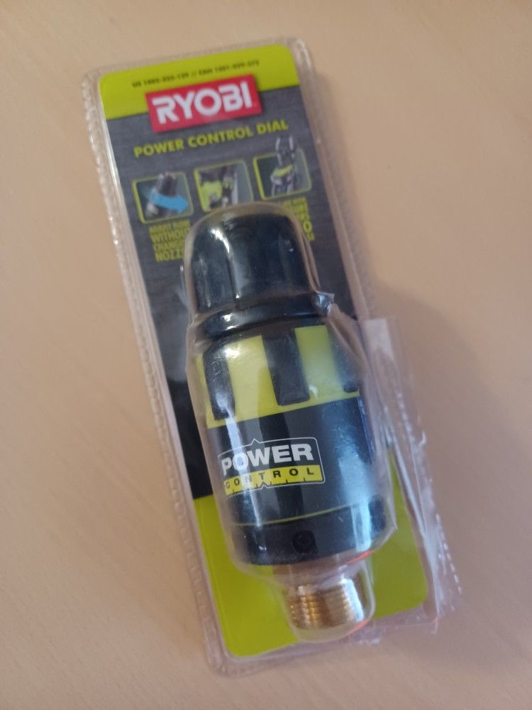 Brand new Ryobi power control dial for use with pressure washers up to 3300 psi. Adjustable flow without changing nozzles. Comes in original open package.