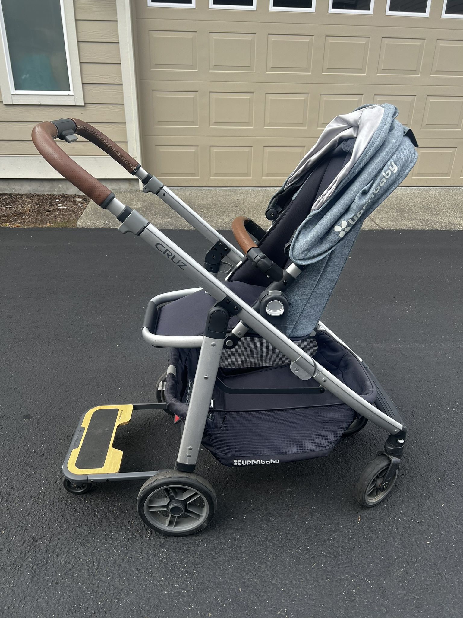 Excellent condition. reversible Toddler Seat allows your growing child to ride forwards, backwards, completely upright, reclined, and anywhere in between. Includes piggy back ride along, mosquito net, rain shield, snack tray, extra stroller lining and newborn snug seat.