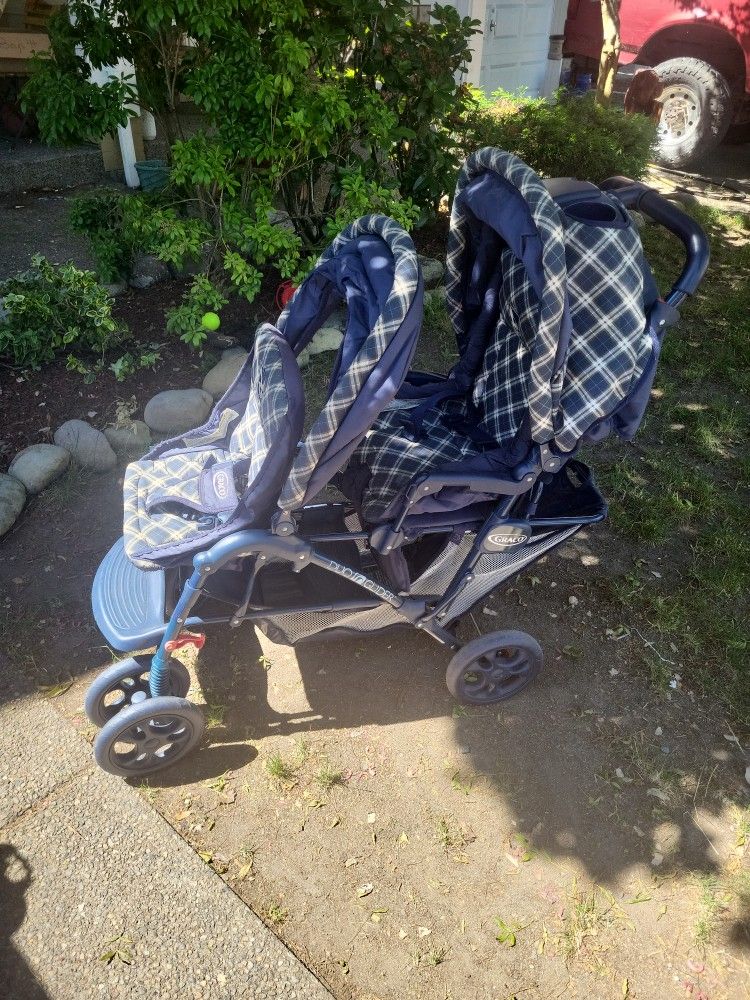 Graco duo glider double stroller. Good condition. Has just been in our garage. Fully functional. No tears or stains. $50 obo