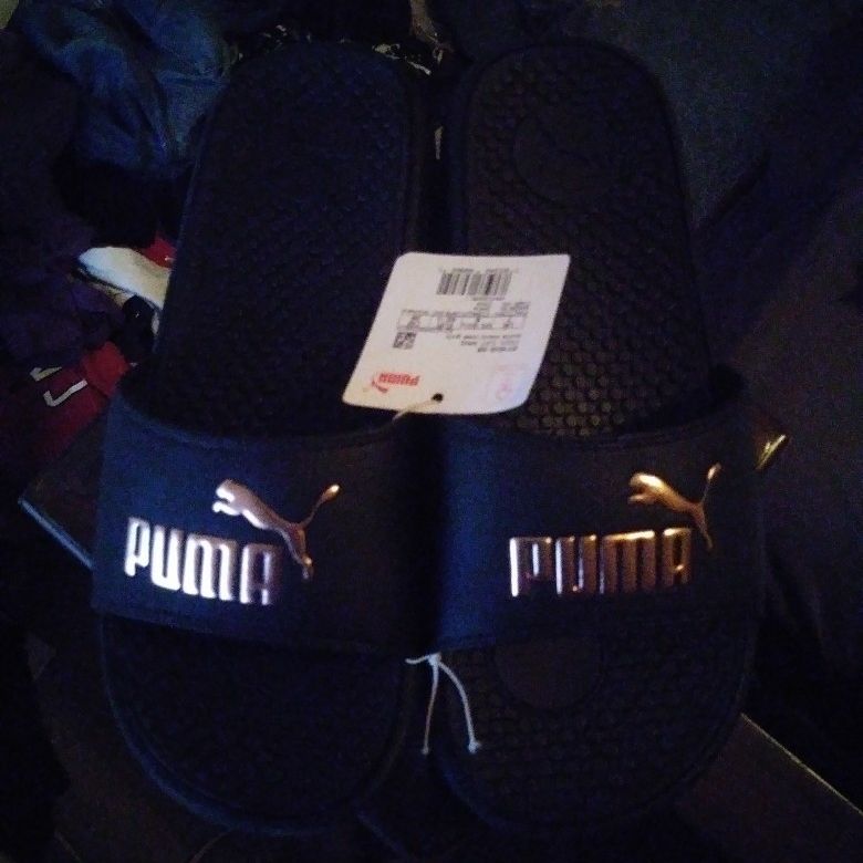 Women's size 9 puma sandals brand new black sandal rose gold puma logo