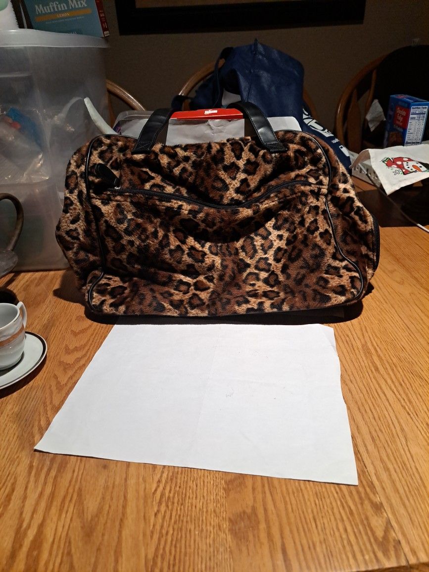 Vintage Y2K Leopard Print Shoulder Bag With Black Leather Strap. Beautiful animal print bag in excellent condition. Price reflects any flaws. I dont see any flaws except 1 extremely small hole on inside stiching .5" slit on inside lining seam. It affects nothing . This bag is a great bag and a great gift idea. Affordable Style prices. Passing on the savings as much as I can. Let me know if interested. Used, but nice a clean. Not used very much at all. I dont see wear marks. Please click on my profile to go to my page to see more unique items and a wide variety of vintage collectibles. From jewelry to jerseys and hot wheels to fine China. Make an offer, you won't know unless you try.. Please feel free to ask any questions, even on items that have been on my page for years. Still available.