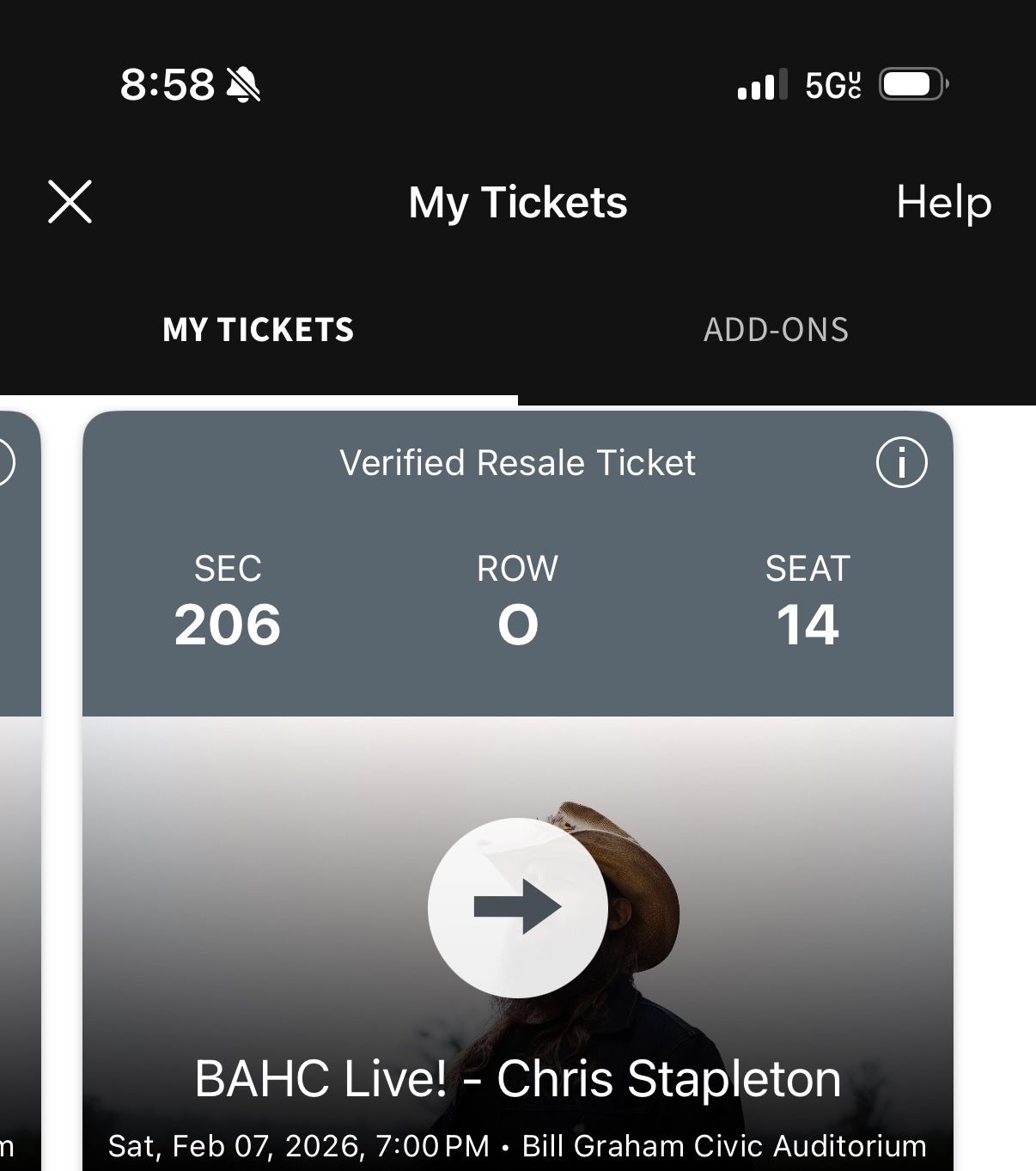 BAHC Live! - Chris Stapleton Tickets In San Francisco