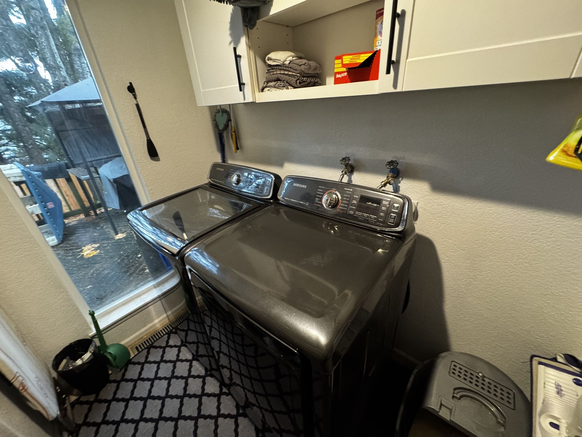 $700 as a set or separately priced Samsung black stainless 7.4 cf electric dryer with multi steam model #DVE52M7750V $450 works great no issues Matching Samsung black stainless 5.2 cf washer with active wash, steam, water jet &built in sink basin for hand washing or soaking. Model #WA52M7759AV Recently started seeing what looks like particles in washer after a cycle sometimes, and not after every one, did some research and sounds like it could be a Washer flange wearing down that may eventually need replacing. Could be easy to do I don't know but if your handy or know your way around a washer this could be easy to figure out when needed. $350 still works great and has lots of features They even play music when the cycle ends