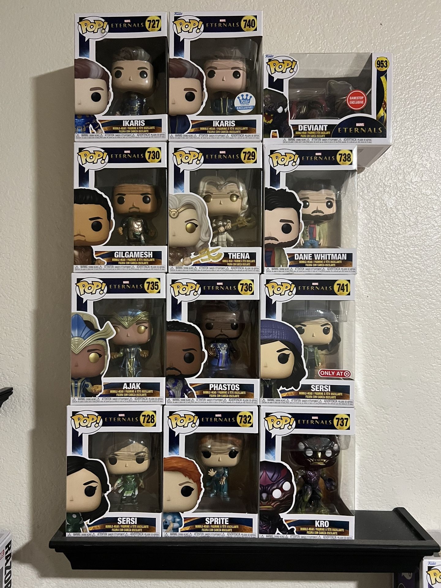Marvel - The Eternals - set of 12 Funko Pop new in box - $5 each or $40 for the whole set. Ikaris #727 & 740 Deviant #953 Gilgamesh #730 Thena #729 Dane Whitman #738 Ajak #735 Pastors #736 Sersi #728 & 741 Sprite #732 Kro #737