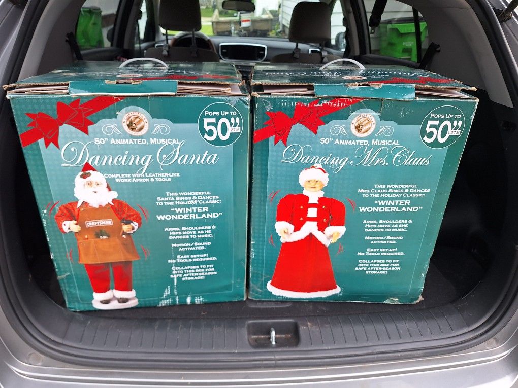 Im selling my matching set of Mr. And Mrs. Clause 5ft tall dancing and singing. Both work great. Asking $200 firm for the set