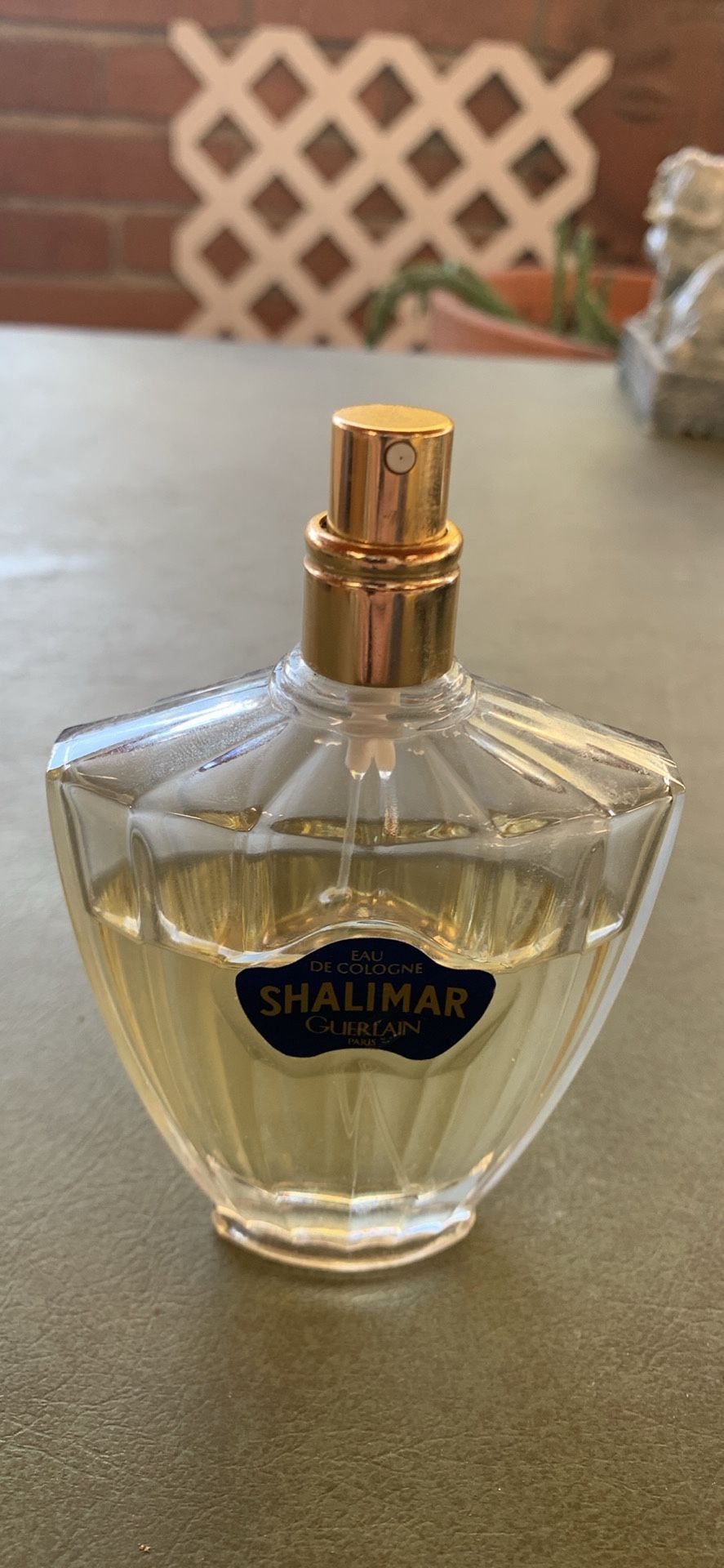 Vintage Guerlain Shalimar Eau de Cologne in a fluted glass spray bottle. 3/4 full