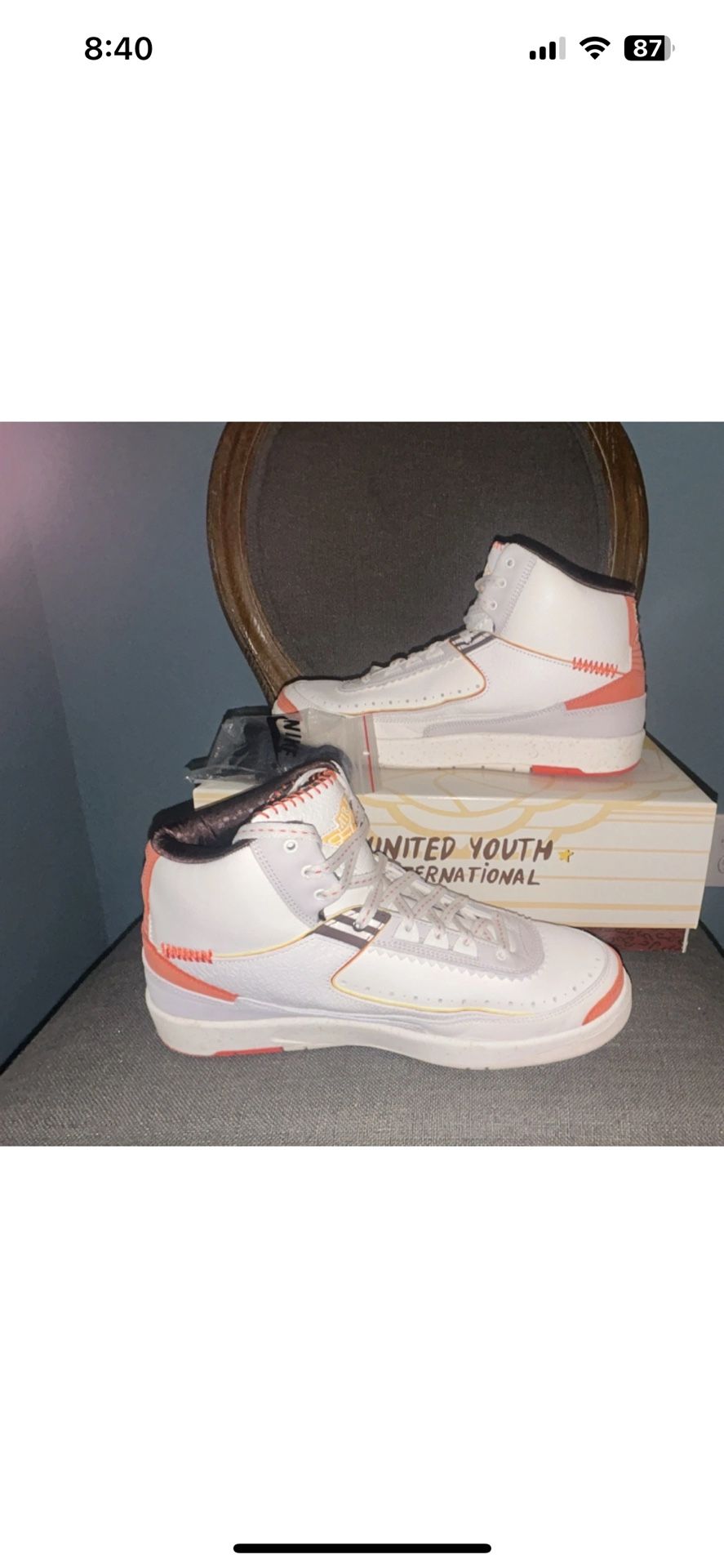 Nike Air Jordan 2 Maison Chateau Rouge White Orange High Top Men's Sneakers