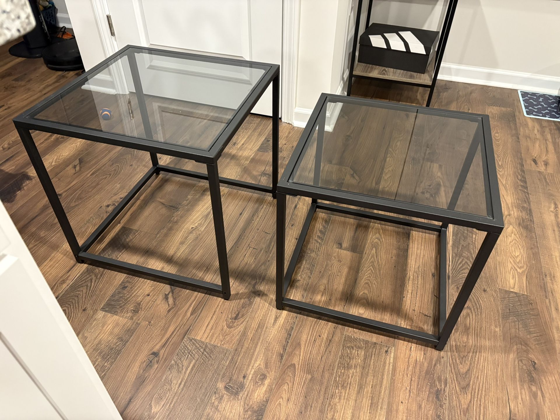 Coffee table with glass top size is 19.7 x 19.7 x 19.7 there are 2 tables total as shown in the picture.