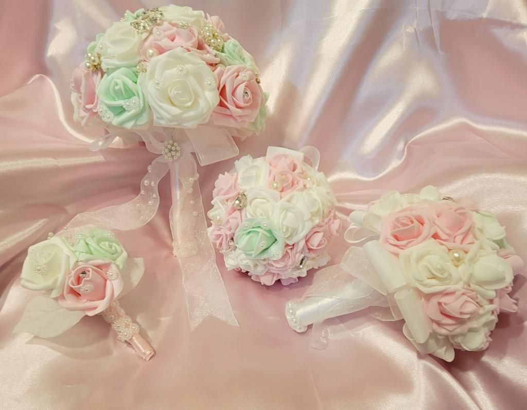 NEW! BROOCH BOUQUET FOR BRIDE/GROOM BOUTONNIERE/ 2 BRIDESMAID BOUQUETS (BUNDLE)