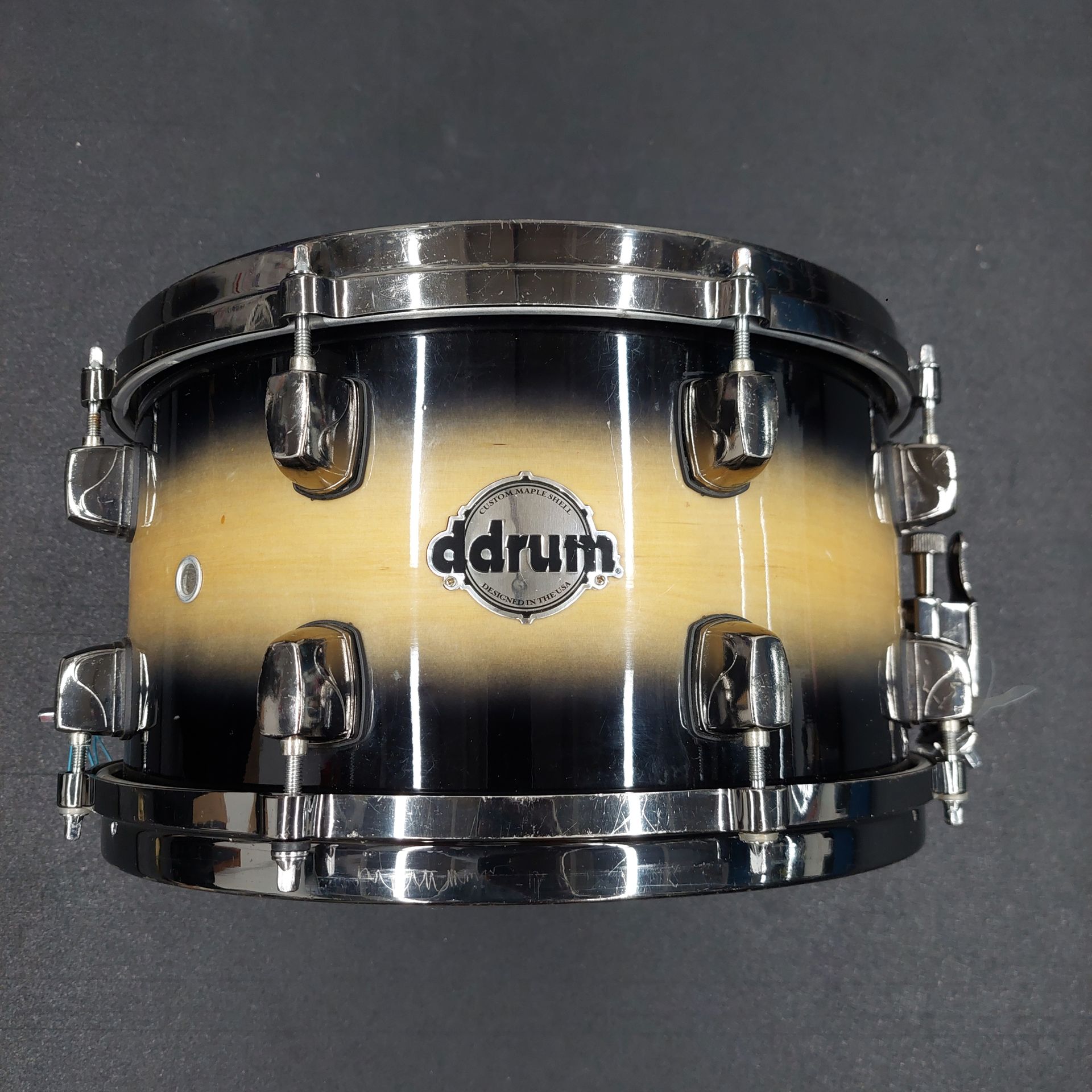 Used Ddrum 13x7 in Custom Maple Snare Drum. 2 tone burst lacquer finish Diecast hoops Normal wear, sporadic scuffs. Fully functional. Tuned and ready to be played. Must pick up at the ARCO Gas Station: 1138 E 20th St, Upland, CA 91784 Please plan to pick up the same day. Cash only. Keywords: drums, drum, drum set, drum kit