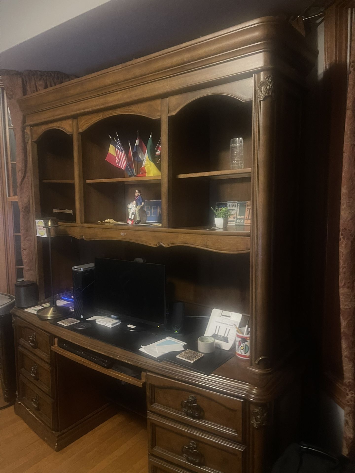 . Built entirely from premium, solid North American hardwoods, its robust construction ensures incredible durability and stability for years, even decades, of productive desk offers a luxurious and efficient surface area combined with integrated storage. Elevate its functionality significantly with the optional Hutch Top, providing ample, organized shelving for essential documents, files, and books right where needed