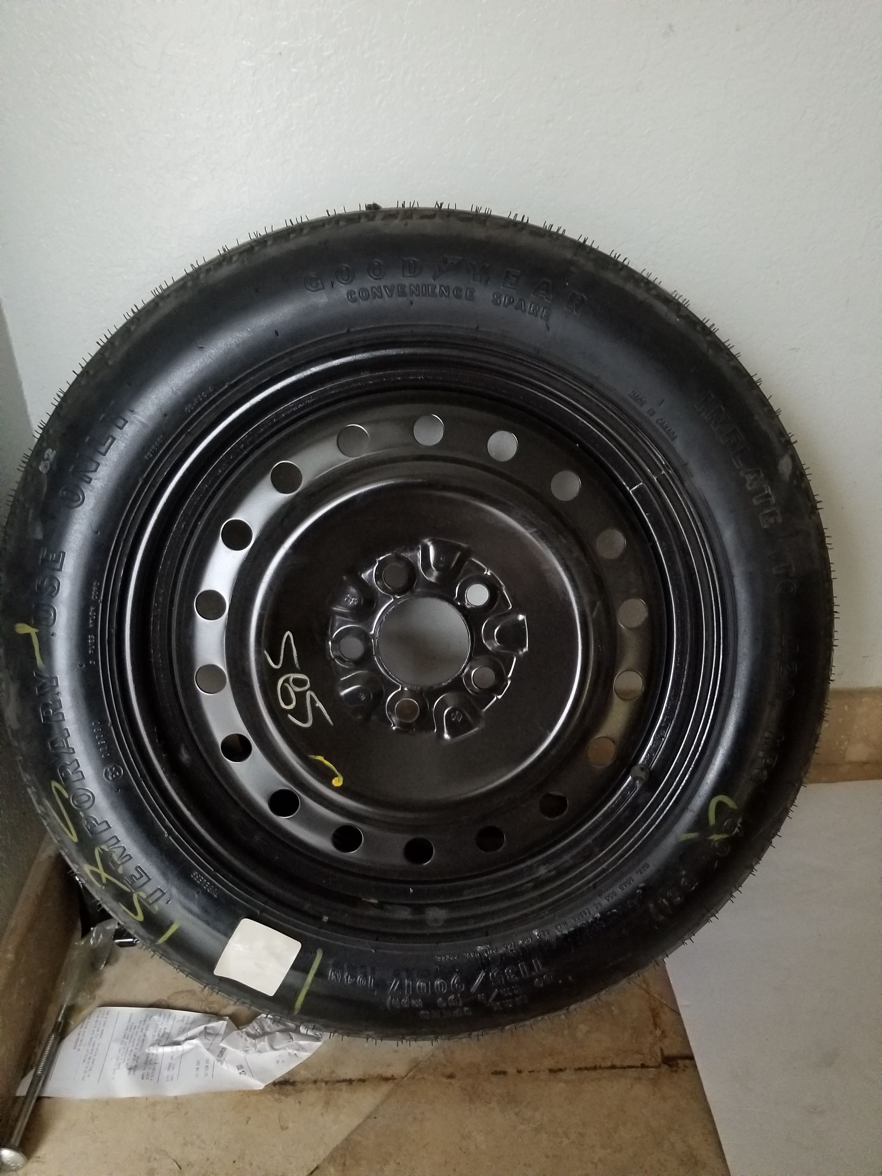 Up for sale a brand new compact spare tire and jack with wheel chokes from a 2015 dodge charger asking $200 firm