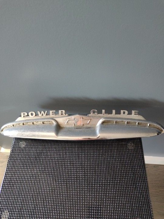 This is an emblem from a 1951-52 Chevrolet truck, I believe. Don't know model but I've seen them identified as such on ebay, etc. The item is in good vintage condition run has some bumps on the surface but nothing that goes through the metal no rust visible. The top edge on some of the letters has a black substance which can be easily removed, it does not go through the metal finish., I'll leave that up to the person who buys this. I just saw one listed on eBay and they are asking $480 and mine seems to be in a little bit better condition and a lot better price. I will pay to ship this item which of course will be carefully packed so that it arrives in the same condition it is in now. Feel free to ask any questions.