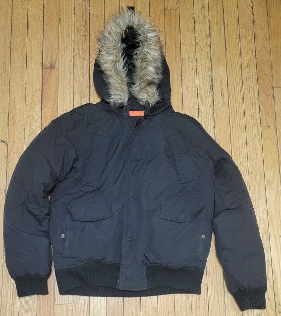 Superdry Rescue Black puffer jacket with a faux fur trimmed hood. Shell is 100% nylon with 50% down and 50% feather padding. Great condition