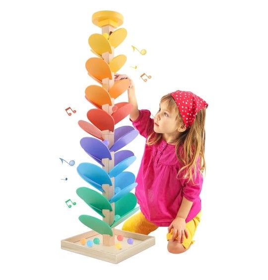 Wooden Marble Run Music Tree Montessori Toys for Kids 3+ Years Old Marble Ball Run Learning Game Wood Color Sorting Toys for 4-8 Boys and Girls