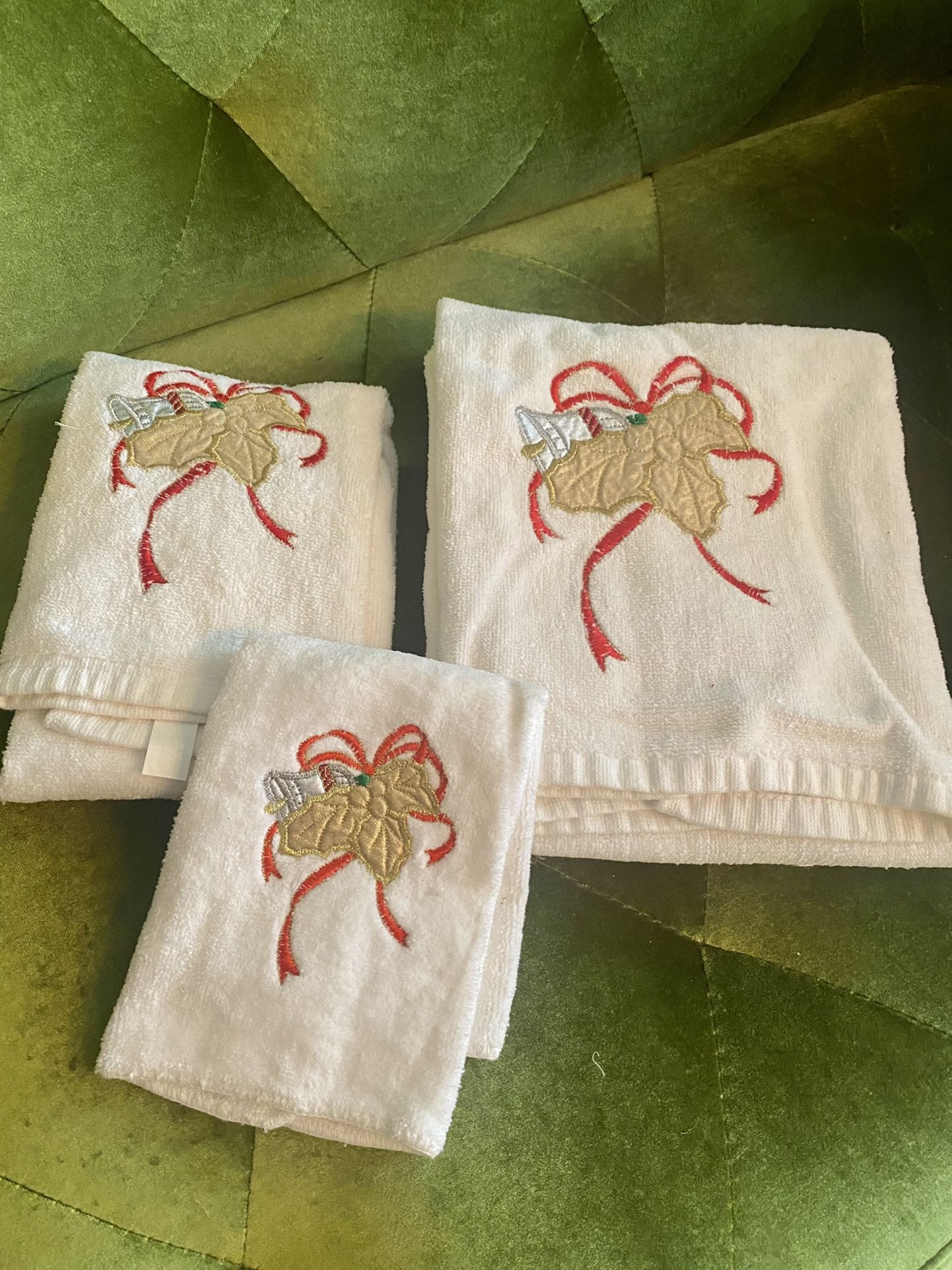 Vintage Christmas Wash Cloth, Hand Towel And Bath Towel Set