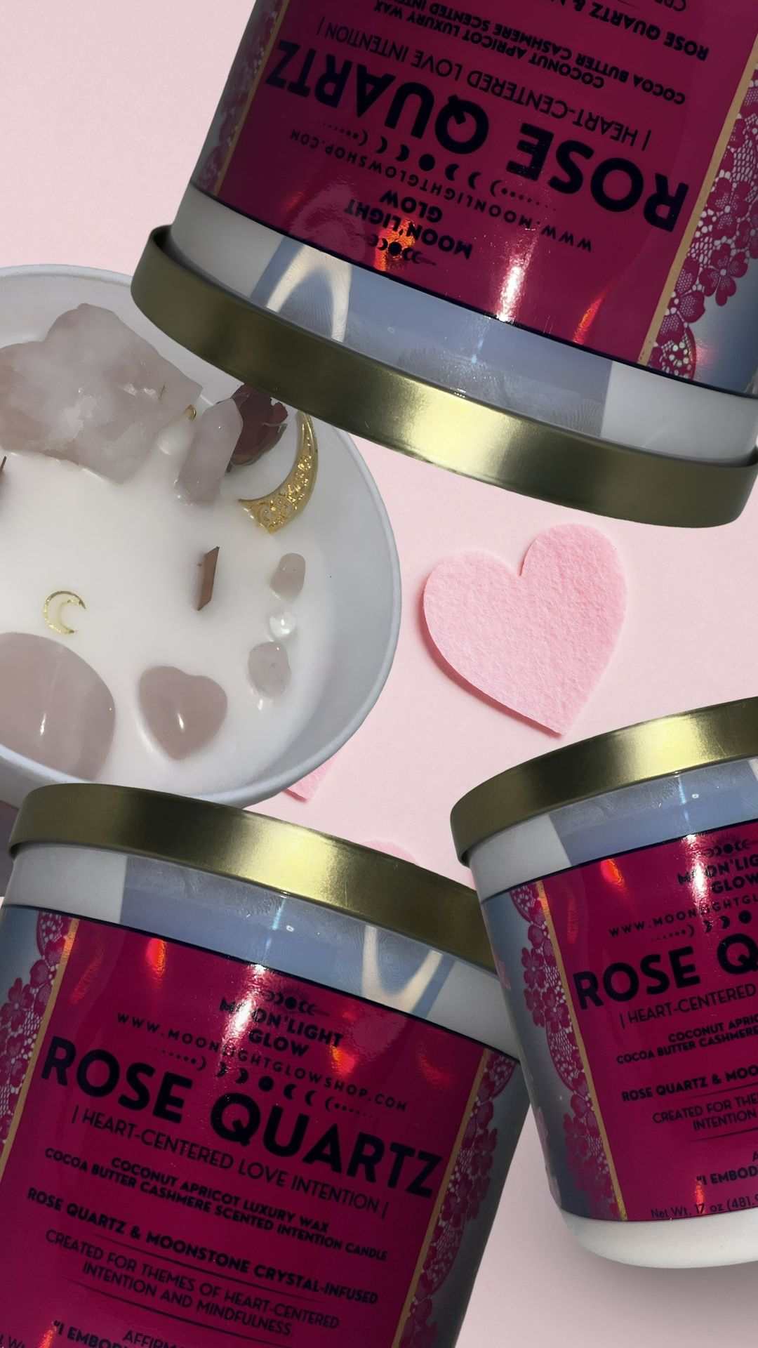 Valentine’s Day Love Attraction Gift Set, infused with genuine rose quartz — the crystal of love, attraction, and heart healing. 🌹 This set was intentionally created to support self-love, emotional balance, and inviting loving energy into your life or relationship. A thoughtful, meaningful gift for Valentine’s Day — whether for a partner, friend, or yourself. Includes: 🕯️ Rose Quartz–Infused Candle 17 oz. 55+ hour burn time – clean-burning and intention-focused 💧 Rose Quartz–Infused Intention / Body Oil – perfect for self-care or ritual use 🛁 Rose Quartz–Infused Bath Soak – relaxing, heart-centered, and calming ✨ Handcrafted with care ✨ Infused with loving intention ✨ Smoke-free, clean home ✨ Cocoa Butter Cashmere Fragrance Candle ✨ Oil & Bath Salts-Pure Jasmine Essential Oil ✨ Brand: Moon Light Glow Perfect for: • Valentine’s Day gifts • Love attraction & self-love rituals • Relaxation, meditation & spiritual self-care • Anyone who loves crystals, candles, and intentional wellness 📍 Local pickup | $15 delivery fee if nearby zip 34286 💬 Message me with any questions or to see more photos 💗 Limited availability — gift-ready set!
