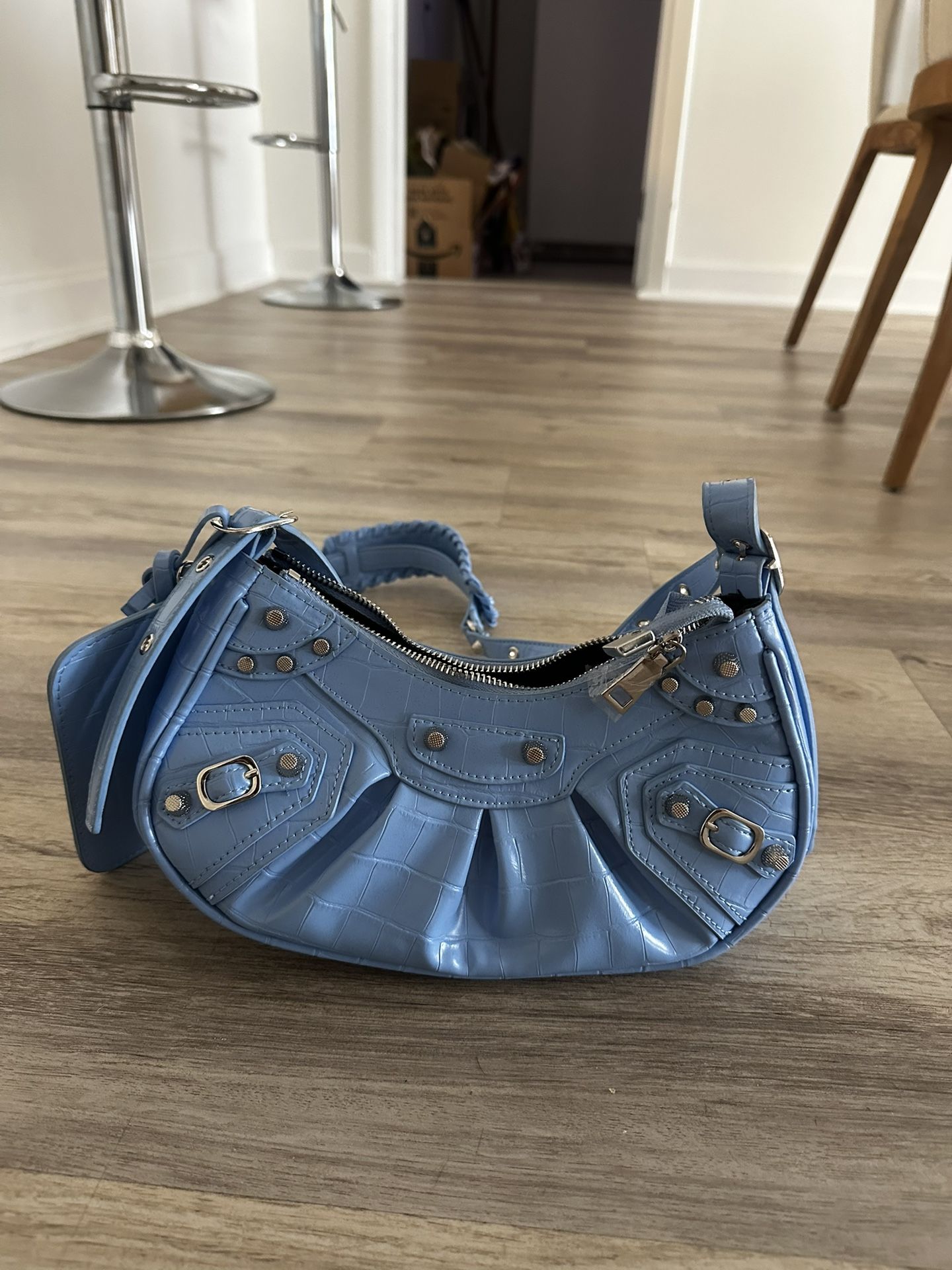 baby blue Balenciaga Le Cagole crossbody bag 🩵 designer bag in the prettiest pastel blue shade — adjustable strap, signature studs, and soft high-quality leather. these retail for thousands online so this is a steal. perfect mix of trendy + timeless. i’m open to reasonable offers! first come first serve 💨 #balenciaga #lecagole #designerbag #crossbody #luxuryfashion