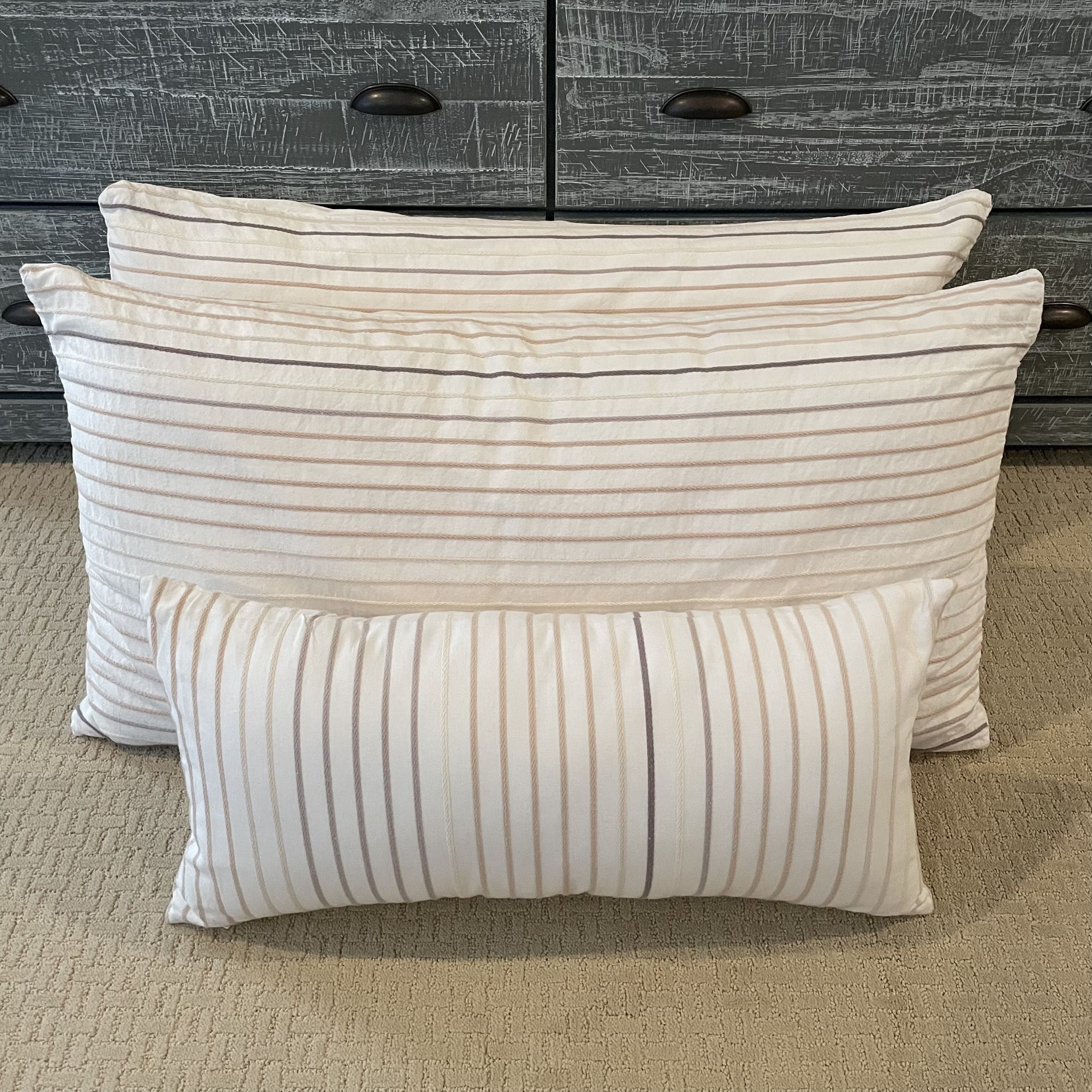 Charter Club Decorative Striped Throw Pillows 2 x King Size Pillow Shams (King pillows NOT included, they were only in there for the photo) 1 x rectangle decorative pillow (pillow included) Like new. Always stored on a bench in our room, never used on the bed.