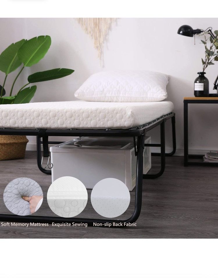 LEISUIT Rollaway Guest Bed Cot Fold Out Bed - Portable Folding Bed Frame with Thick Memory Foam Mattress for Spare Bedroom & Office. Just used few times and like new condition.