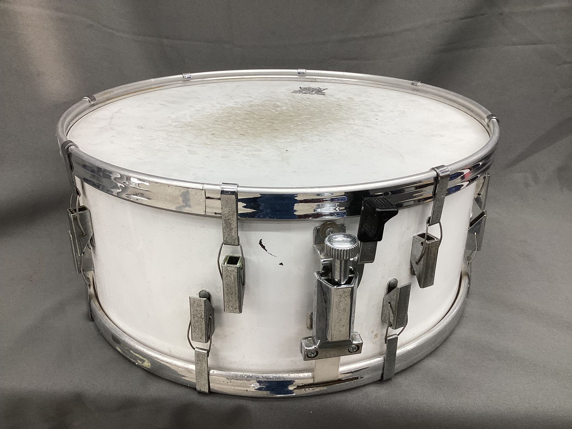 Remo PTS (Pre-Tuned System) snare drum. • Great for beginners or practice • Lightweight and easy to use • Shows normal wear (head is used but still playable) Perfect for students or rehearsal use.