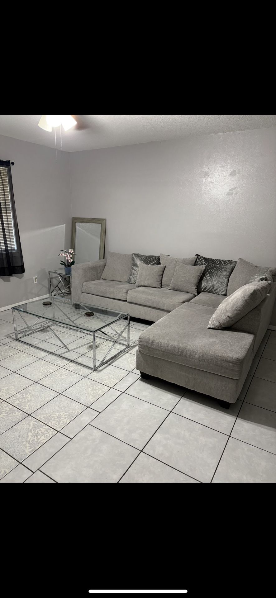 Moving out sale need gone asap im selling couch and table with 4 chairs and a set of side tables in the picture it’s a long one and 2 small tables for the sides of the couch