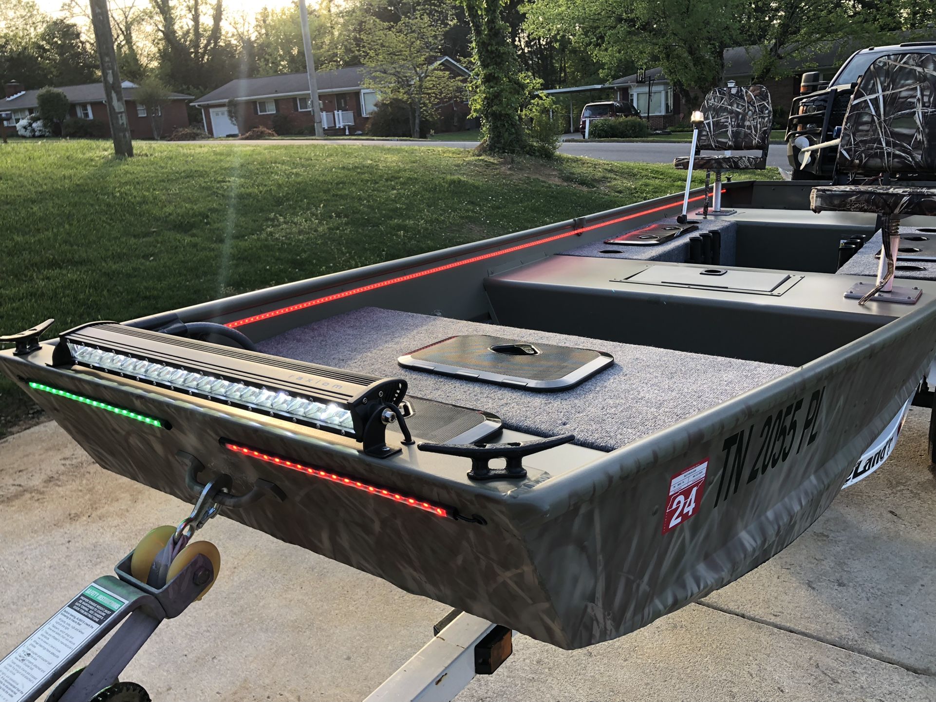 2020 Tracker Topper 15 with 21hp Honda and Beaverdam mudrunner XL long tail kit. Four, built-in hatches, livewell, dual-battery set-up, 3 gallon fuel tank, emergency kill switch and battery cut-off, LED gunnel lighting (red), light bar (21.5”), stern light, switch panel (rocker switches) with USB and 12v outlets, flooring and carpet, built-in catwalks, removable swivel chairs (x2 6” pivot mount), low hours on motor. Everything is brand new and works perfectly. $15,500 OBO. Come see it in person. Serious inquiries only. Comes with trailer and boat cover. Trailer lights and bunks recently replaced. 2” ball required. 80lbs tongue weight. Boat buckles included on trailer. Boat is registered through 2024. Comes with three, two-blade propellers. Unloaded top speed is 23mph. Decking and sub-floors have been lined with closed-cell foam to add buoyancy. But runs great. Gets on plane quick. Runs in 3” of water. Email me to get phone number and contact information. Willing to deliver locally. Message me for more pictures. I just finished installing EVA foam on all exposed horizontal aluminum surfaces. Price is negotiable. Delivery is available if necessary. Come check it out in person. It is an awesome boat. I built it for fishing and du k hunting. I don’t get out as much as I would like, so I am willing to let it go. Nothing is wrong with the bot. Works great, motor always turns over, and it has too many upgrades and modifications to list.