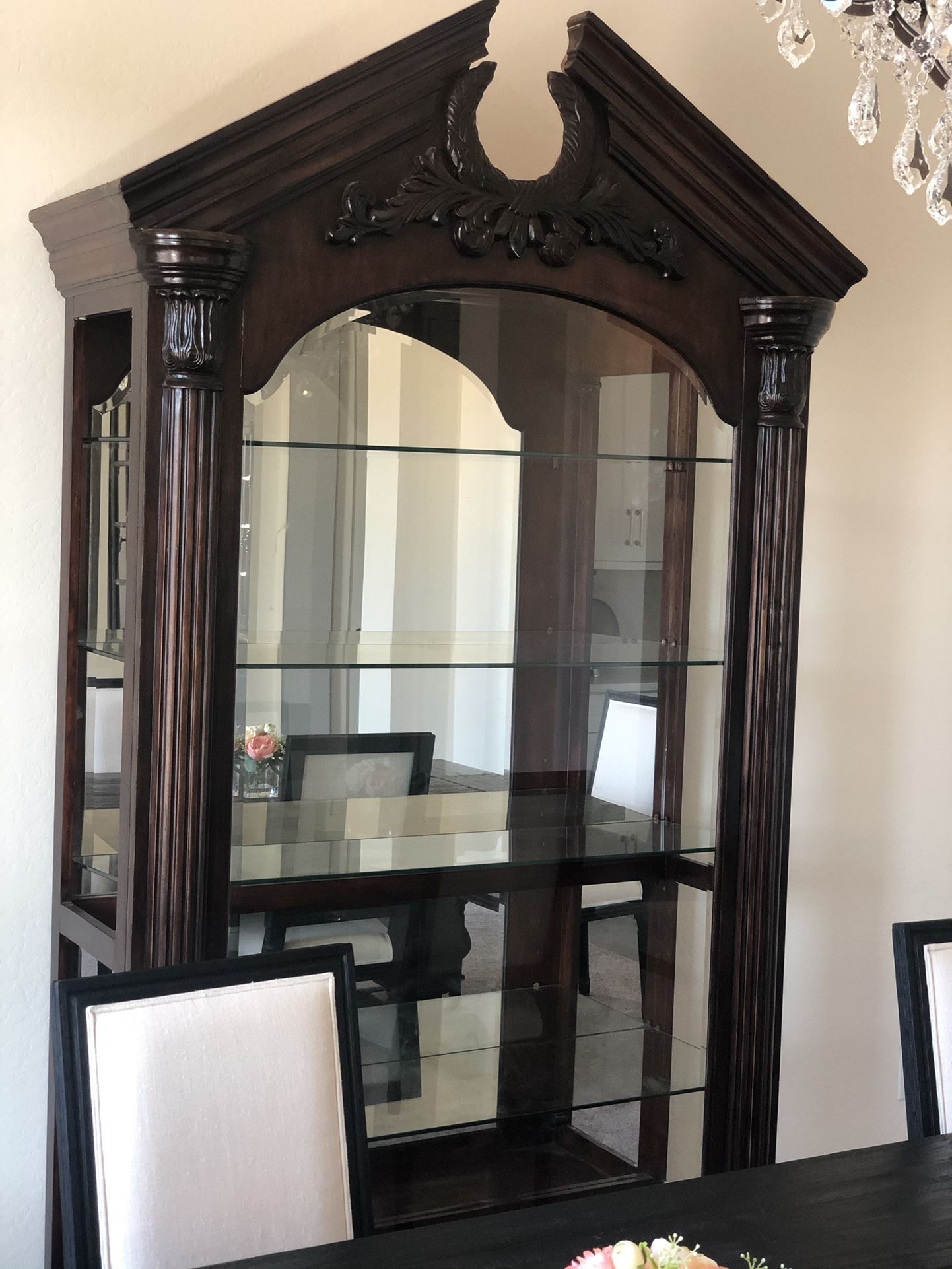 Over 7 foot tall curio cabinet, great for a boutique or home. It has lighting and looks gorgeous when filled with high end Knick nacks. Very heavy piece, bring strong men to move😄