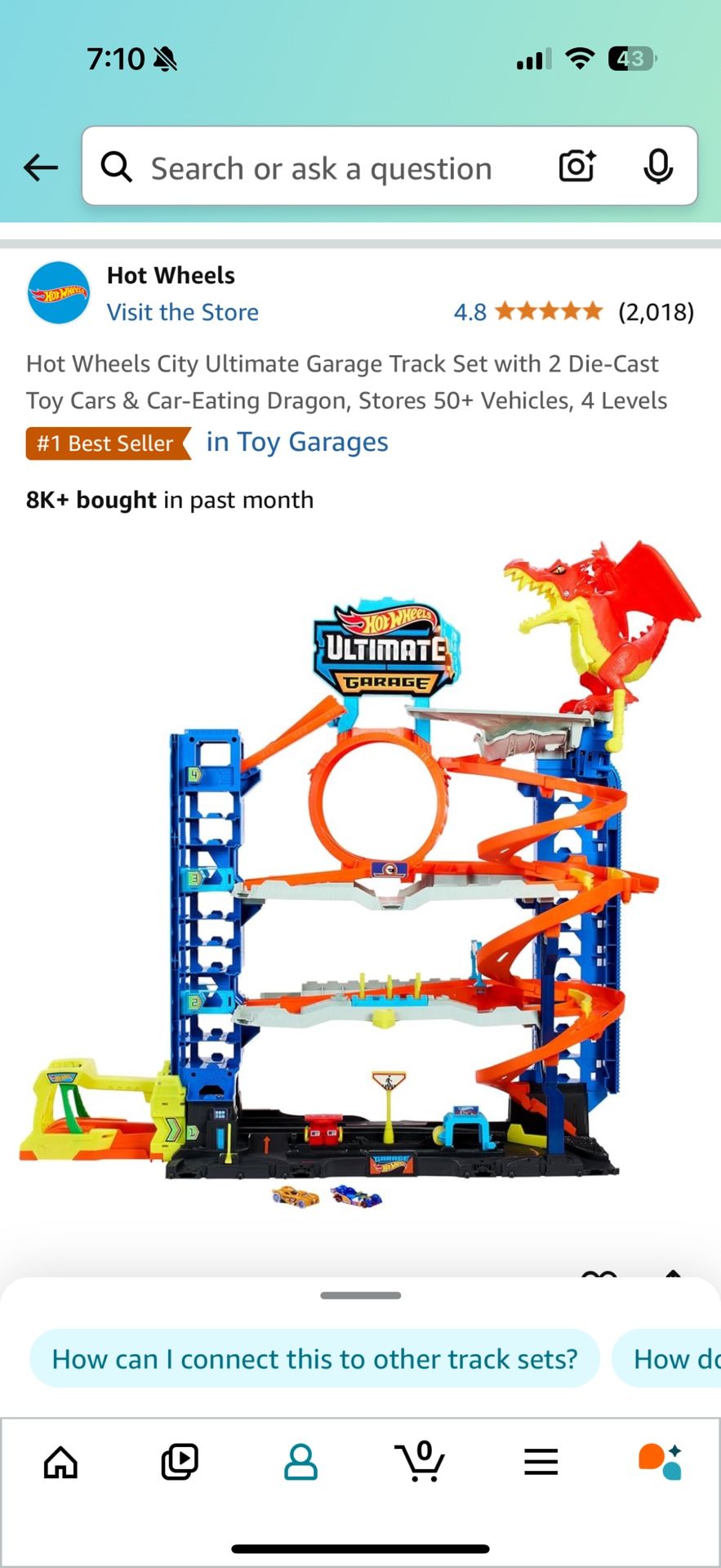 Hot Wheels City Ultimate Garage Track Set with 2 Die-Cast Toy Cars & Car-Eating Dragon, Stores 50+ Vehicles, 4 Levels