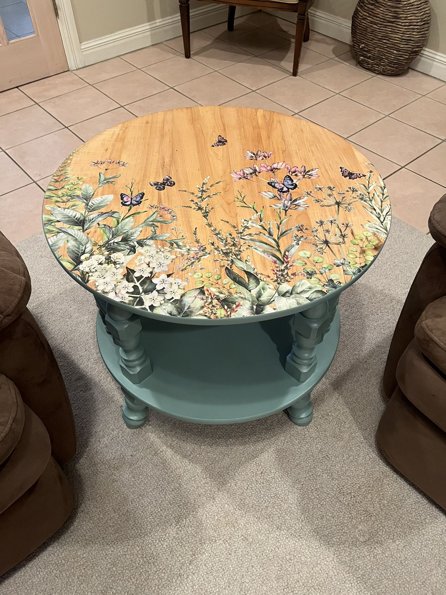 Mid-Century Modern Round, Two-Tiered Maple Side Table Or Small Coffee Table
