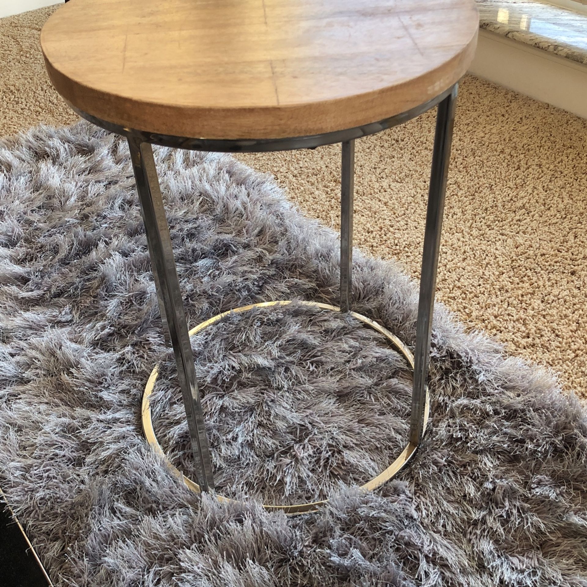 Wooden accent table with chrome legs. Super cute!