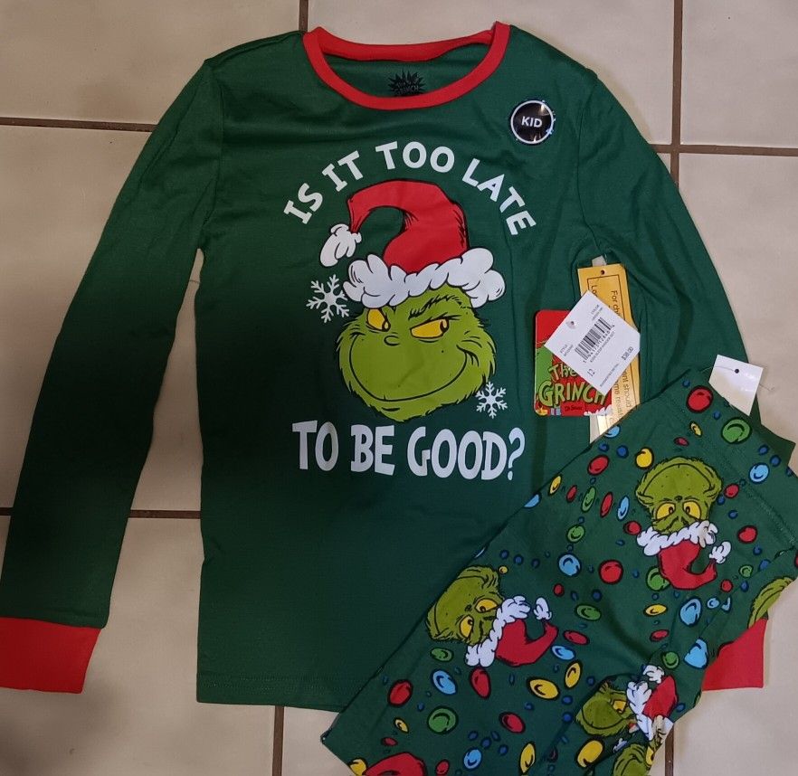 Super Cute Grinch Pajama Set "Is It Too Late To Be Good?" . Boys Size Large. Brand New With Tags. Retail price paid was $36.