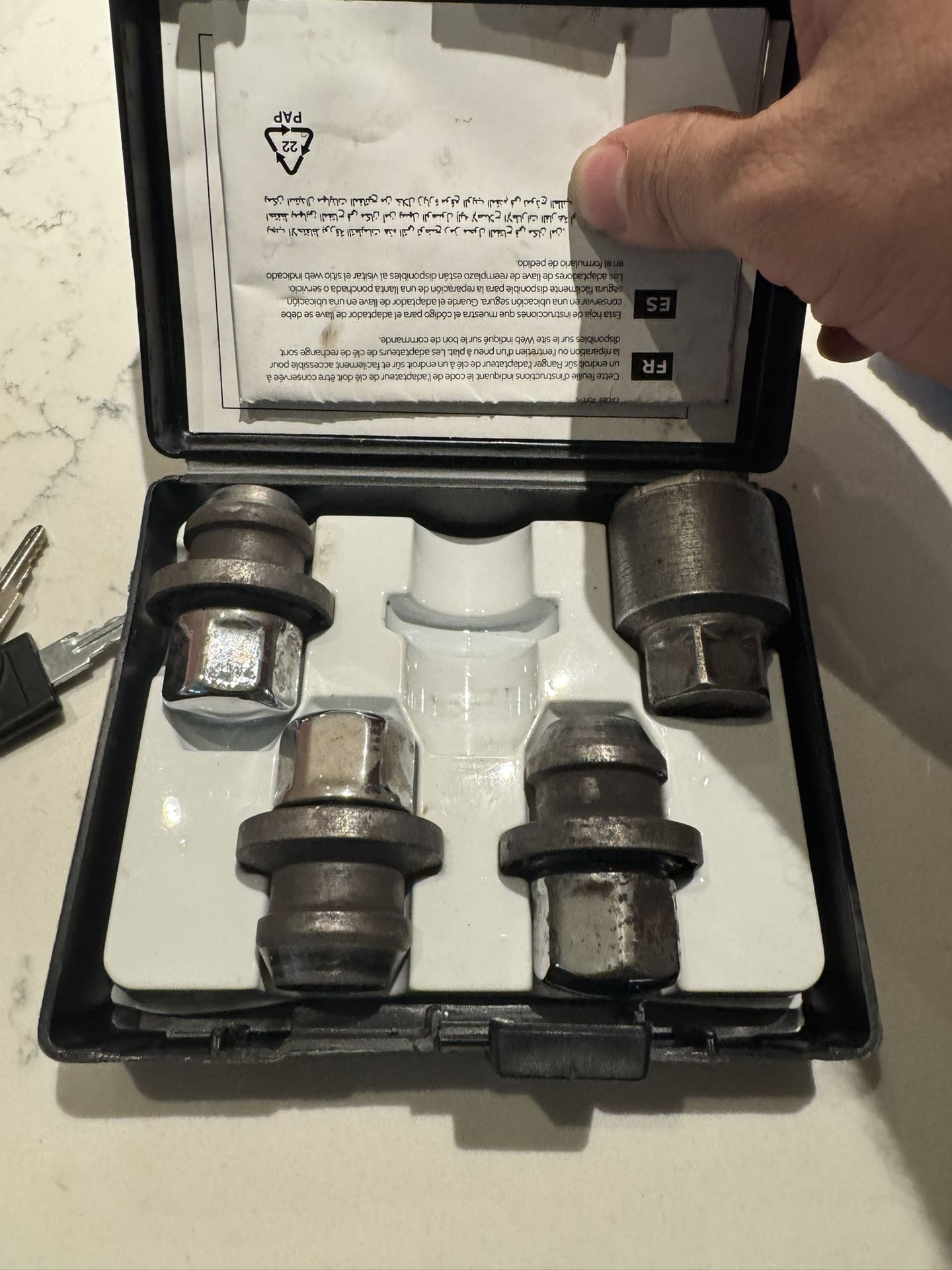 I have THREE (3) wheel locks (Tire Kingdom lost the other one) and the key. Came off a Cadillac.