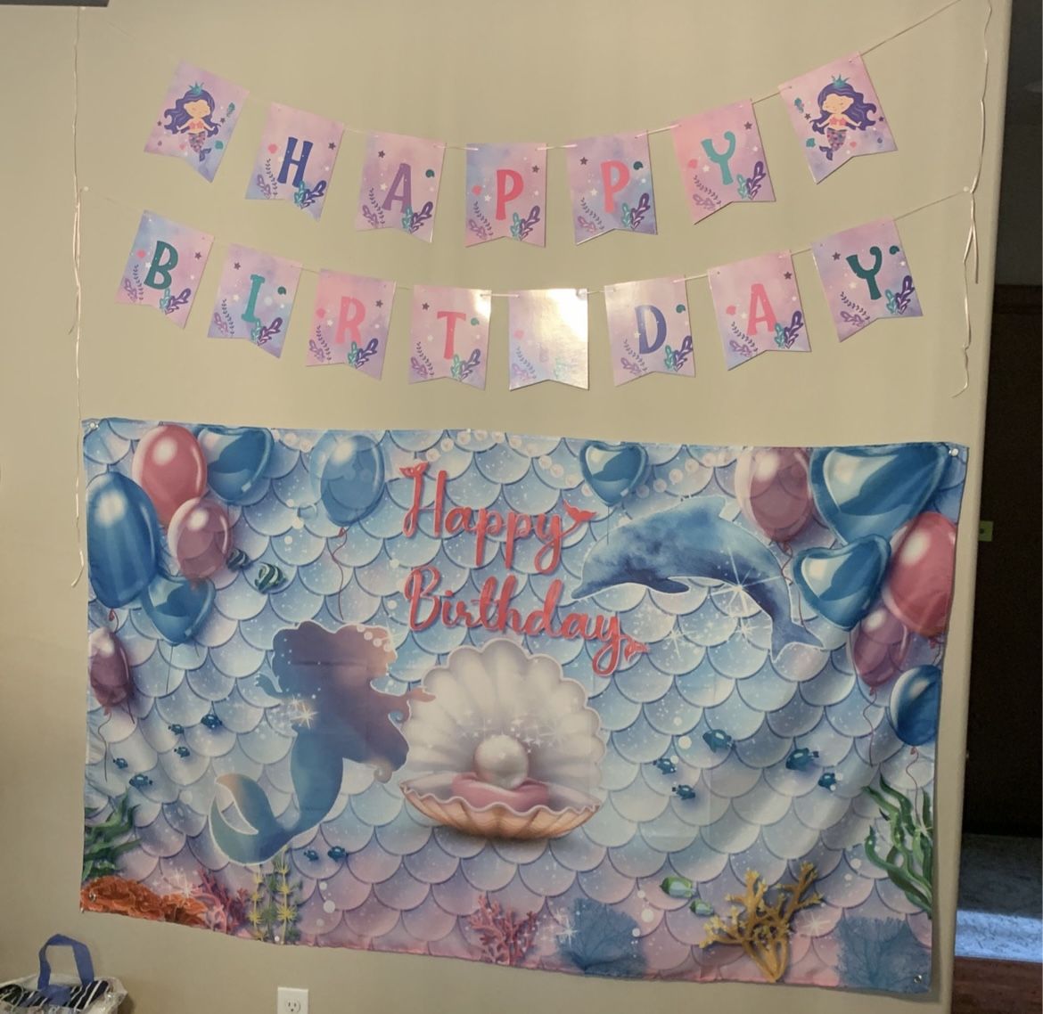 Mermaid Birthday Banner and Backdrop