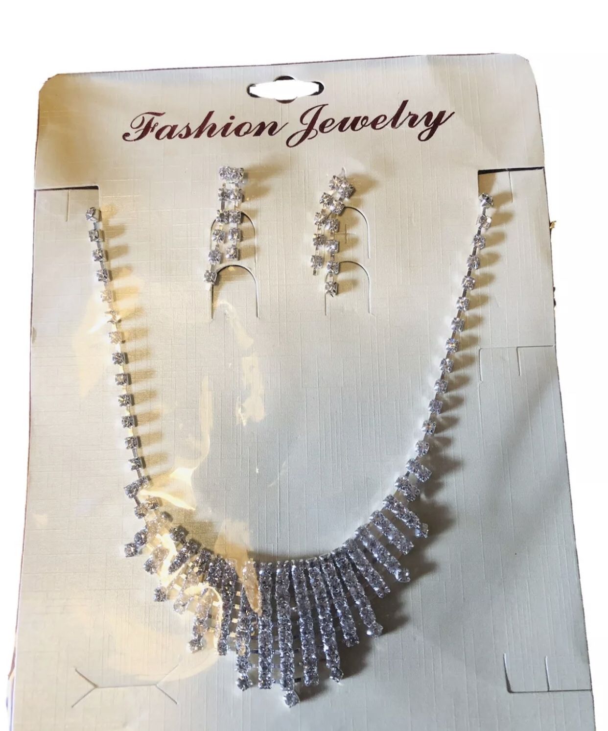 fashion jewelry set. This jewelry set is not real silver or real diamonds. It is a beautiful jewelry set for any special occasion.