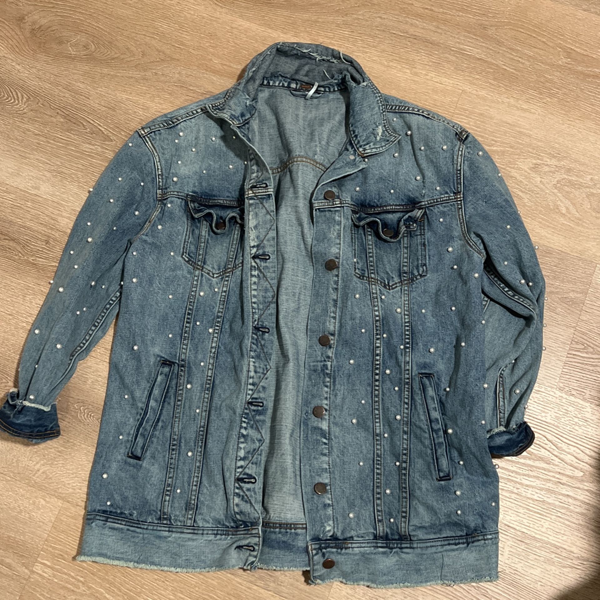 Denim women oversized jacket size m/l super cute statement jacket with pearl details extra heavy denim