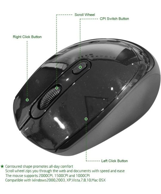 New Wireless Portable Mobile Mouse Optical Mice with USB Receiver, 3 Adjustable DPI Levels, Buttons for Notebook, PC, Laptop, Computer