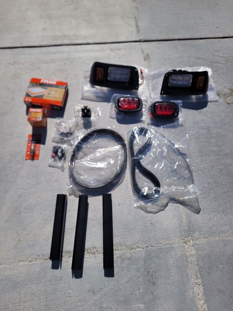 ***Brand New*** Club Car DS Gas Spare Parts - Club Car DS LED upgraded 12V Street Legal Headlights & Tail lights - (1) set Left Right Bottom Golf Cart Windshield Clips - Golf Cart 12V Solenoid (1013609) - Golf Cart Micro Switch Kit (101979101, 1014807, 1014808) - Club Car DS Driven Clutch Belt & Starter Generator Belt (101916701, 1016203) - Club Car DS Driven Clutch Belt (1016203) - Club Car Fuel Impulse Pump (1014523) - Fram Air Filter Replacement (1015426) - Fram Oil Filter Replacement (1016467) -Autolite Spark Plug 64 (101881101)