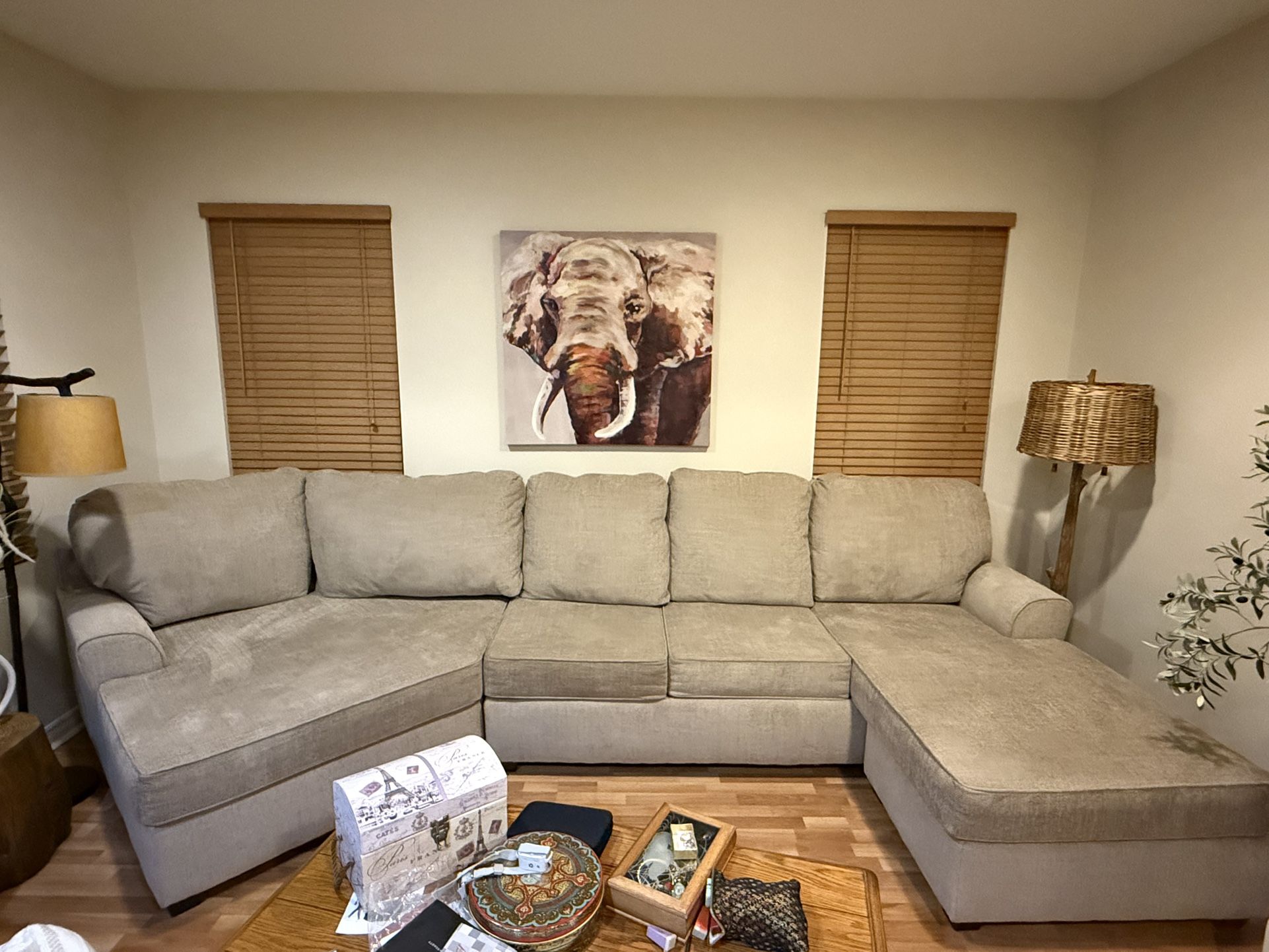 Beautiful plush taupe color 13 foot sectional with cuddler. May have been sat on once or twice. Purchased from living spaces.