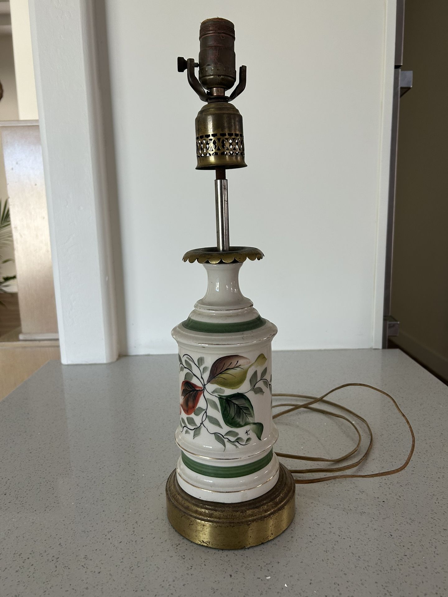 Vintage china table lamp circa 1950’s. 19.5” tall. Harp and shade not included. Excellent condition.