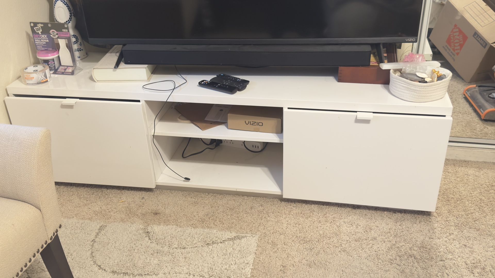Super good condition just a little dusty. Selling due to moving, wish I could keep!! It’s from Ikea. Had for about 3 years. 65” TV sits on top for reference. See last image for dimensions. Serious offers only, please don’t waste either of our time 😊.