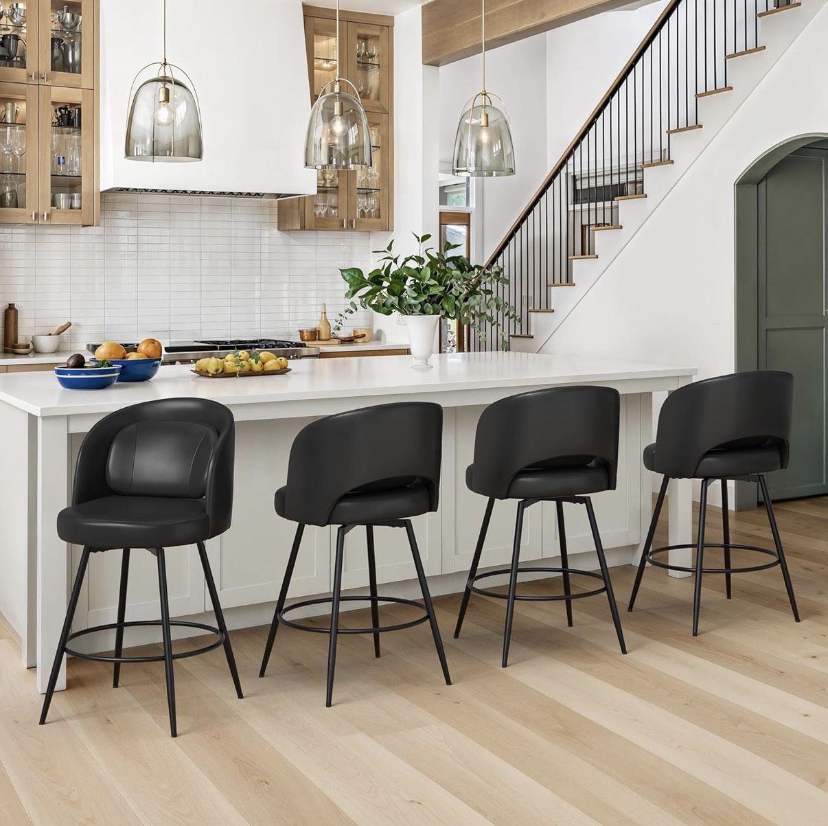 4X Black 26” Swivel Faux Leather Barstools