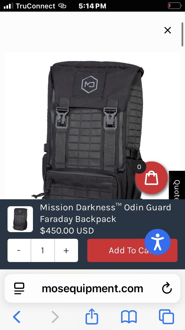 MILITARY-GRADE FARADAY BACKPACK - Stylish and functional backpack for protecting laptops, cell phones, and mobile devices during travel and everyday commuting. Designed for defense against data theft, personal security, EMP protection, EMF radiation reduction, law enforcement and military forensic evidence collection, and to enhance digital privacy (anti-hacking, tracking, spying). 3 Removable Valkyrie Faraday Sleeves - Removable waterproof sleeves for phone, tablet, and laptop isolate your devices from signals. Faraday bag liner blocks WiFi (2.4 & 5GHz), Bluetooth, cell signals including 5G networks, GPS, RFID, and radio signals from low MHz to 40GHz. EMI, EMR, and EMF radiation shielding. Tactical MOLLE Webbing System - Military-grade MOLLE webbing on the front and sides offers customization options for additional pouches, tools, or gear attachments, perfect for outdoor adventures and tactical use. Comfort-Driven Design - Padded shoulder straps, a supportive waistband, and a hidden rain cover keep you comfortable and prepared for any conditions, whether on a hike or a commute. Ample Storage with Thoughtful Organization - Multiple accessory pockets and spacious compartments provide organized storage for all your essentials, making it easy to access and manage your gear on the go. › See more product details The Mission Darkness Odin Guard Faraday Backpack is engineered for those who demand absolute mobile privacy and security. Outfitted with three detachable Valkyrie Faraday Sleeves—sized for phone, tablet, and laptop—this backpack ensures your devices stay protected from all unwanted signals. Its rugged tactical design includes MOLLE webbing for modular expansion and multiple accessory pockets to organize gear and essentials efficiently. Crafted for all-day comfort and durability, the Odin Guard features padded shoulder straps, a waist support band, and premium FIDLOCK buckles for secure, hassle-free access. The connection links for the Faraday sleeves make swapping devices easy, while a hidden rain cover keeps your gear safe in any weather. The Odin Guard Faraday Backpack is the ultimate in secure, tactical storage, designed to keep your digital life shielded without sacrificing style